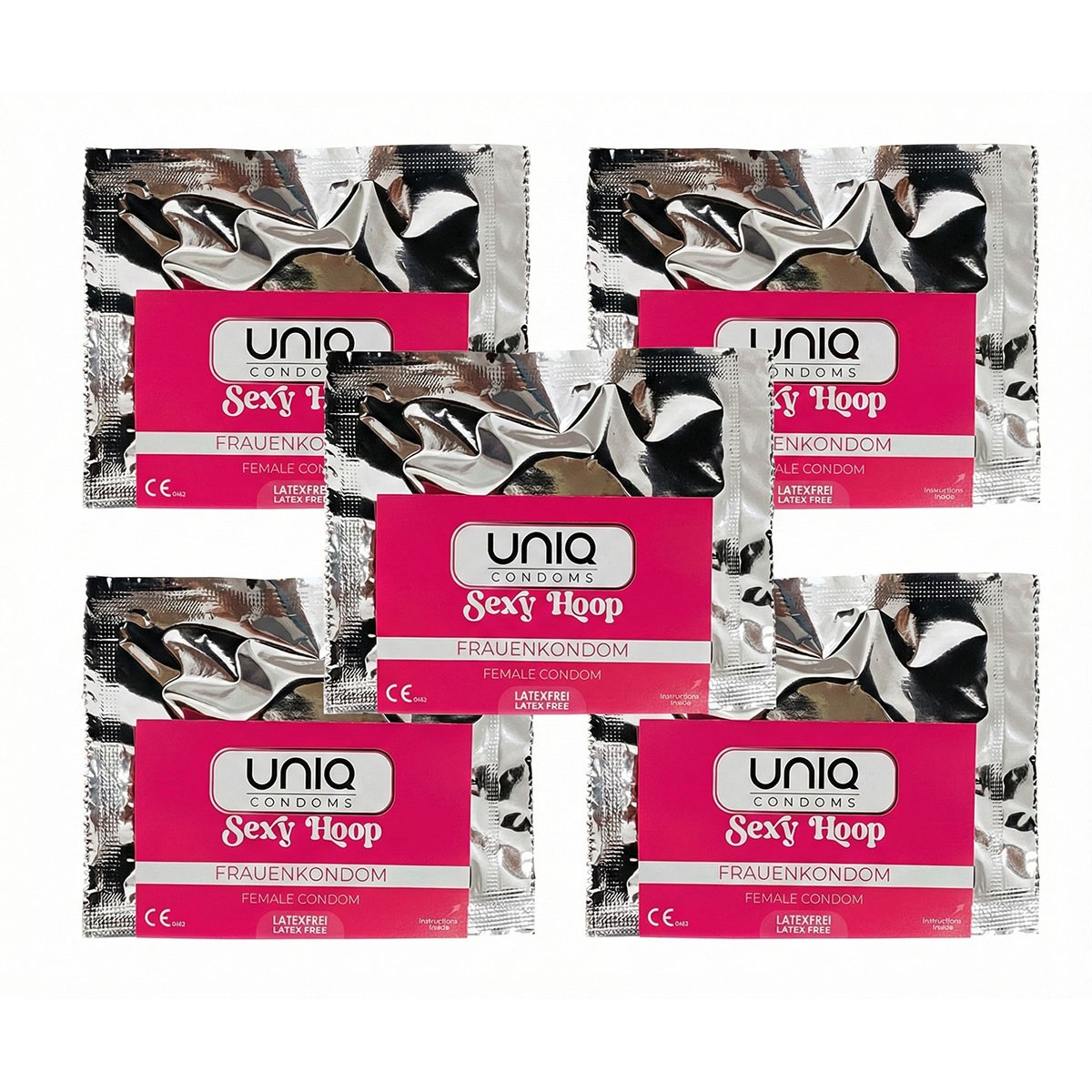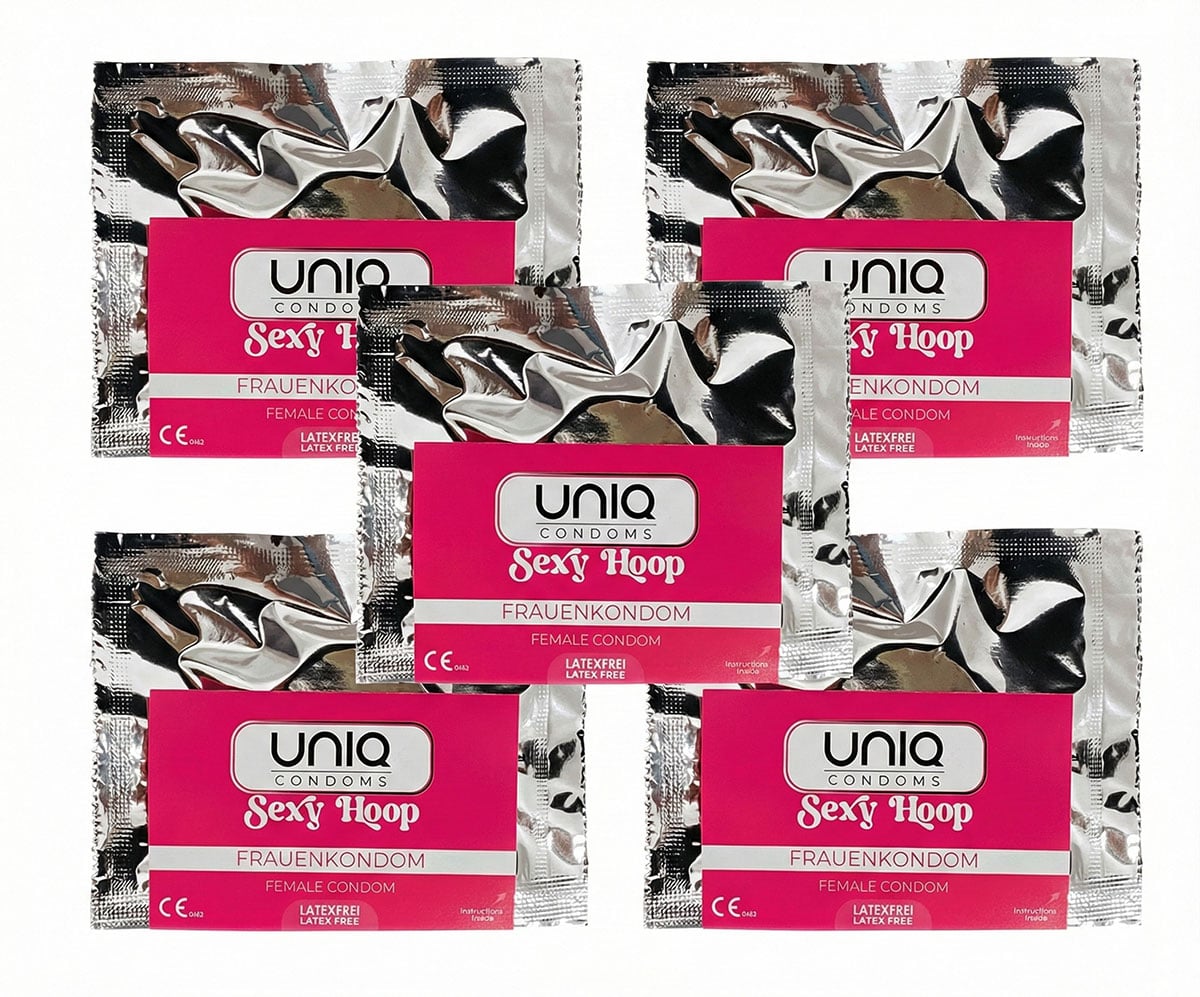 Ты берёшь в руки упаковку — и уже чувствуешь: впереди не одна, а сразу пять возможностей для чего-то особенного. UNIQ Sexy Hoop — это женские презервативы-трусики, которые дарят ощущение легкости, контроля и полного слияния с собой и партнёром. Они без латекса, гипоаллергенны и не имеют запаха. Почти невидимые, они не мешают чувствовать главное. Мягкий материал и эффект кожи к коже дают телу именно то, чего ему не хватает — нежности, близости и страсти. Ты не просто защищена — ты расслаблена, уверена и готова получать удовольствие.Когда комфорт становится возбуждающим