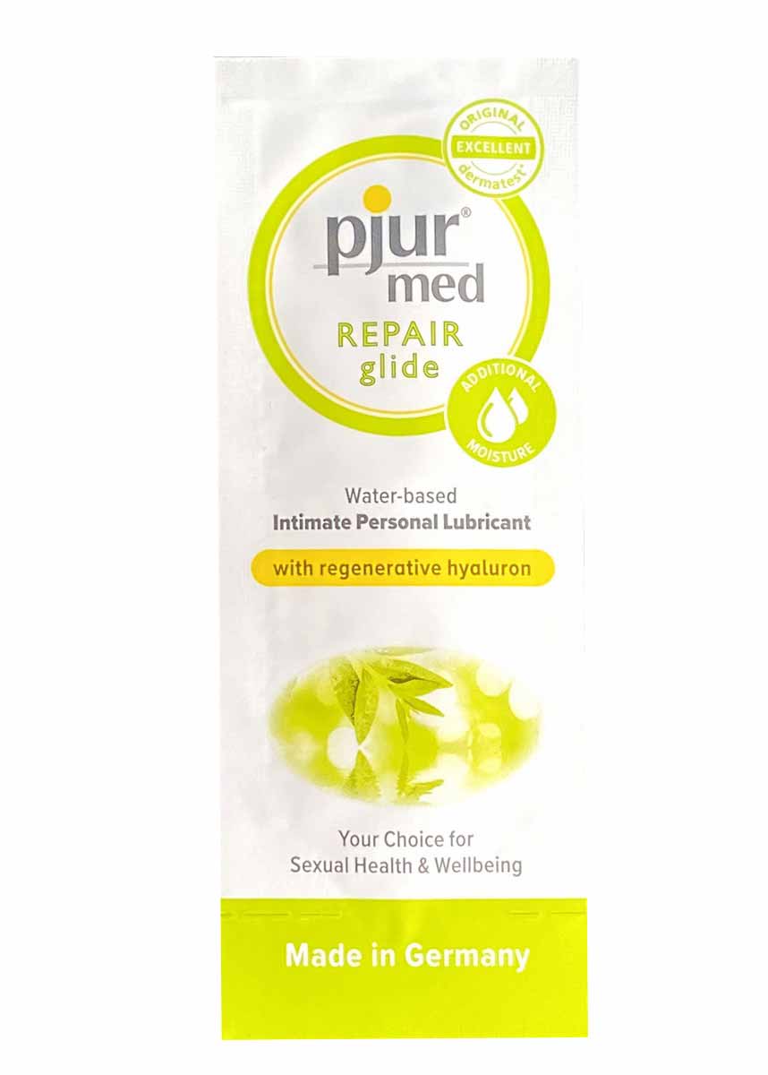 Лубрикант Pjur Med REPAIR glide - это смазка на водной основе с регенерирующим гиалуроном, для сухой слизистой влагалища. Гиалурон обладает способностью связывать большое количество воды и обеспечивать дополнительную смазку. Гиалурон может помочь восстановить вашу кожу.