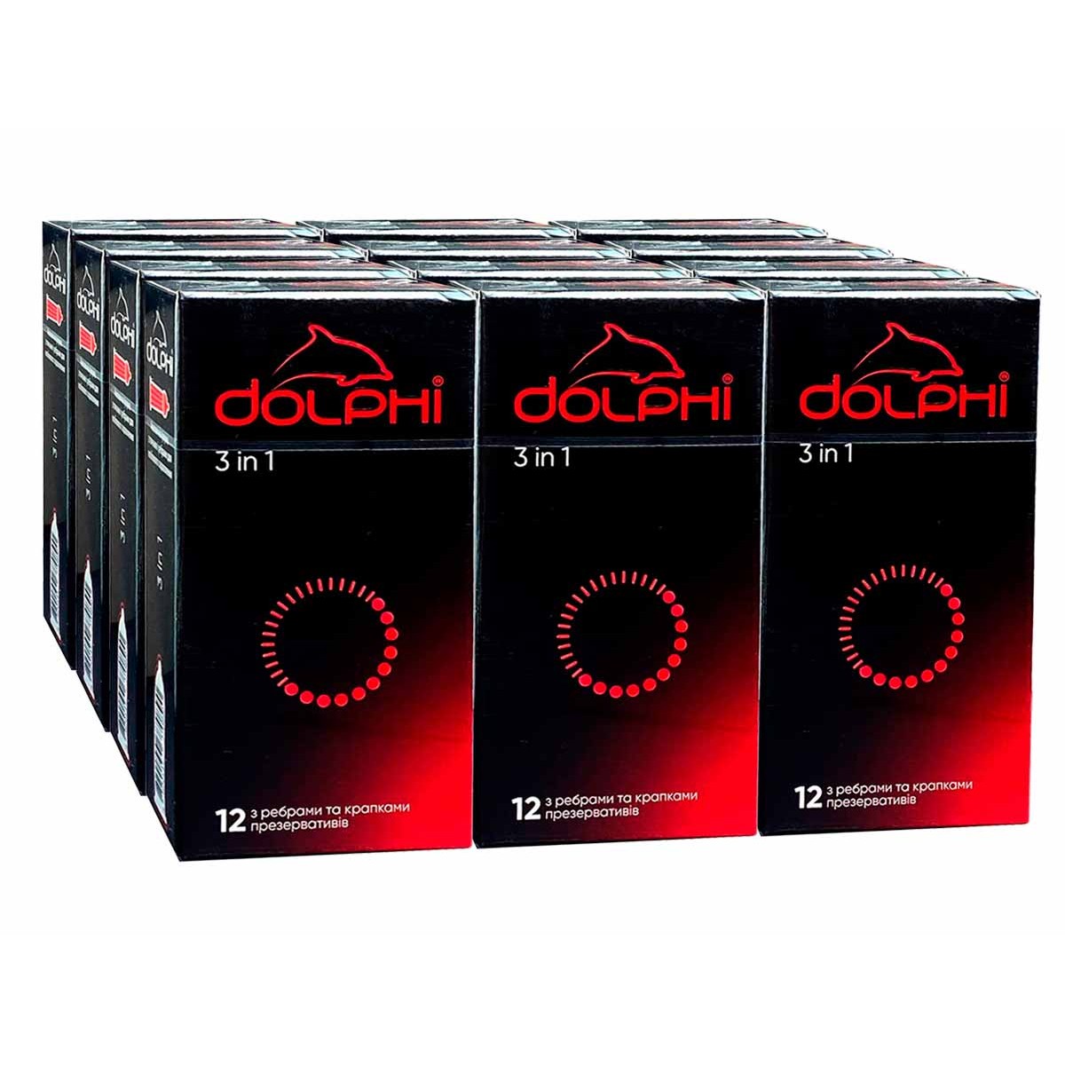 Блок презервативов Dolphi 3в1 ребристо-точечные 144шт (12 пачек по 12шт)
