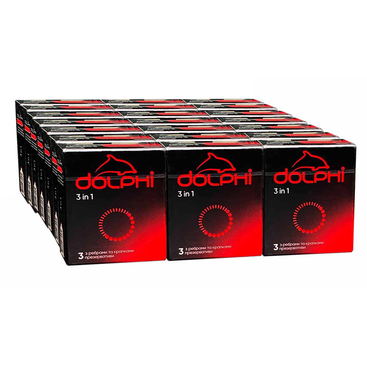 Блок презервативов Dolphi 3в1 ребристо-точечные 63шт (21 пачка по 3шт)