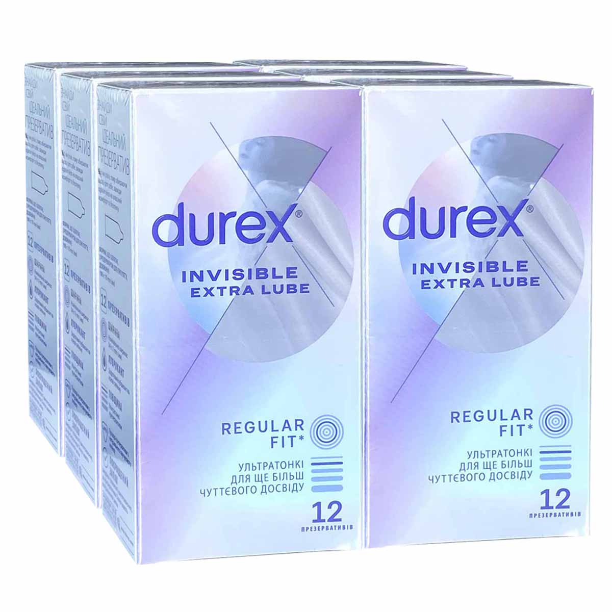 Блок презервативов DUREX 6 пачек 12шт Invisible ExtraLube с дополнительной смазкой