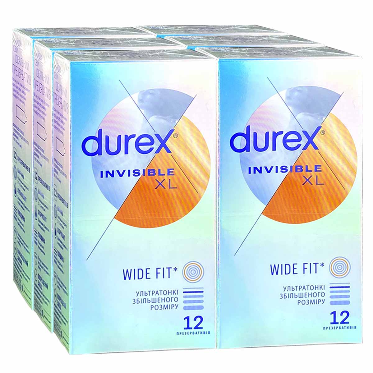Блок презервативов Durex 6 пачек 12шт Invisible XL увеличенного размера