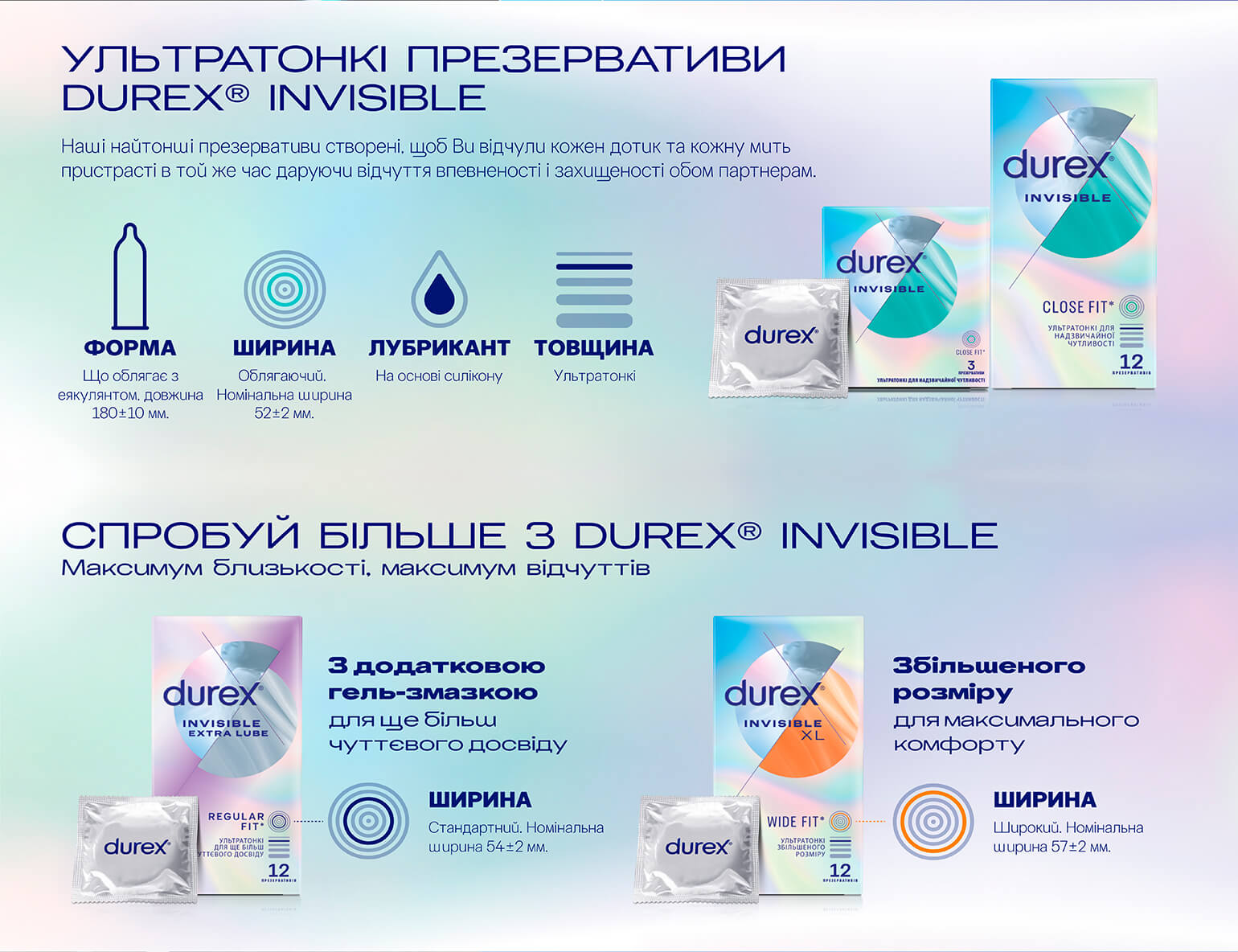 - Латексные презервативы с силиконовой смазкой DUREX® Invisible (ультратонкие), 3 шт. и 12 шт.