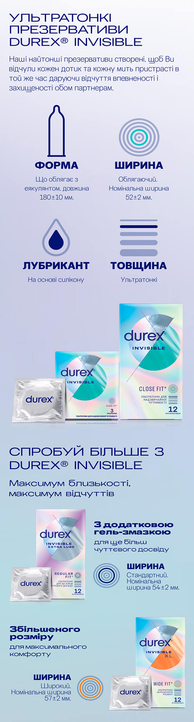 - Латексные презервативы с силиконовой смазкой DUREX® Invisible Extra Lube (ультратонкие с дополнительной смазкой), 3 шт. и 12 шт.