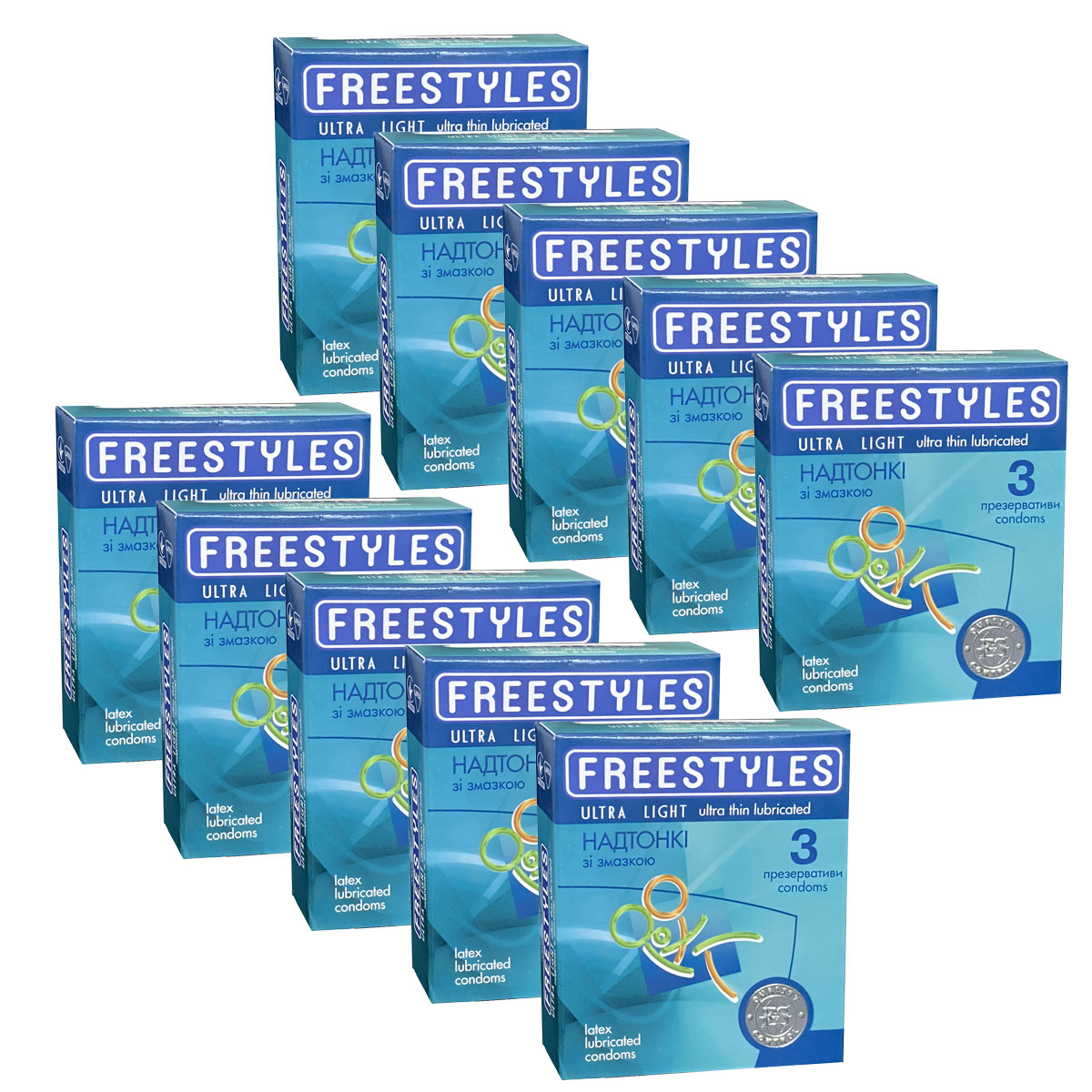 Блок презервативов FREESTYLES 30шт Ultra Light Супертонкие (10 пачек по 3шт)