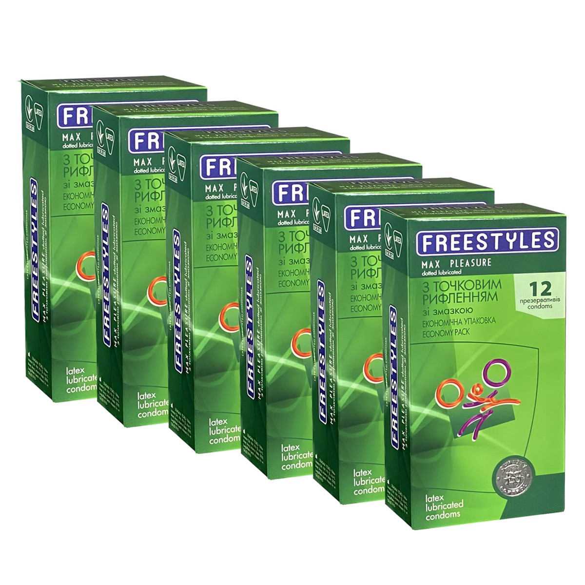 Блок презервативов FREESTYLES 72шт Max Pleasure точечные (6 пачек по 12шт)