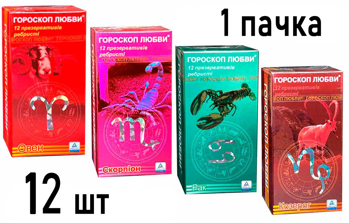 Презервативы Гороскоп любви 12шт ребра (Овен, Скорпион, Рак, Козерог)