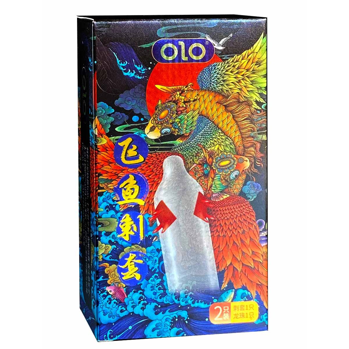 Презервативы с усиками Olo FLYING KOI 1шт шипы + шарик продлевающие на гиалуроновой основе