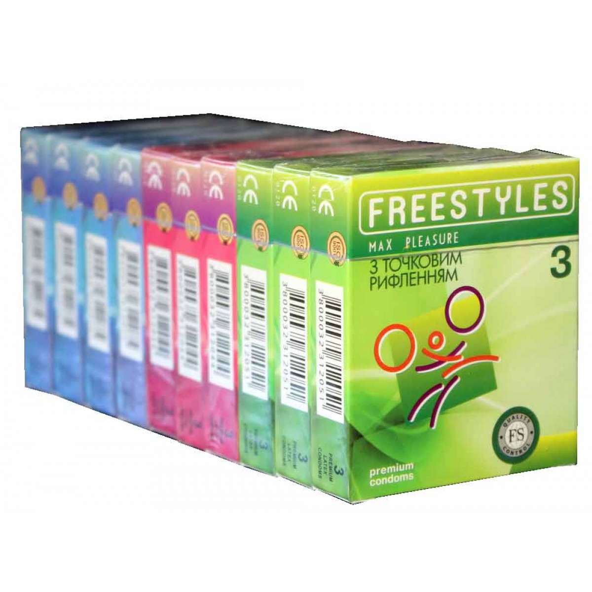 - 3 пачки FREESTYLES Max Pleasure — з точковим рельєфом для цілеспрямованої стимуляції;