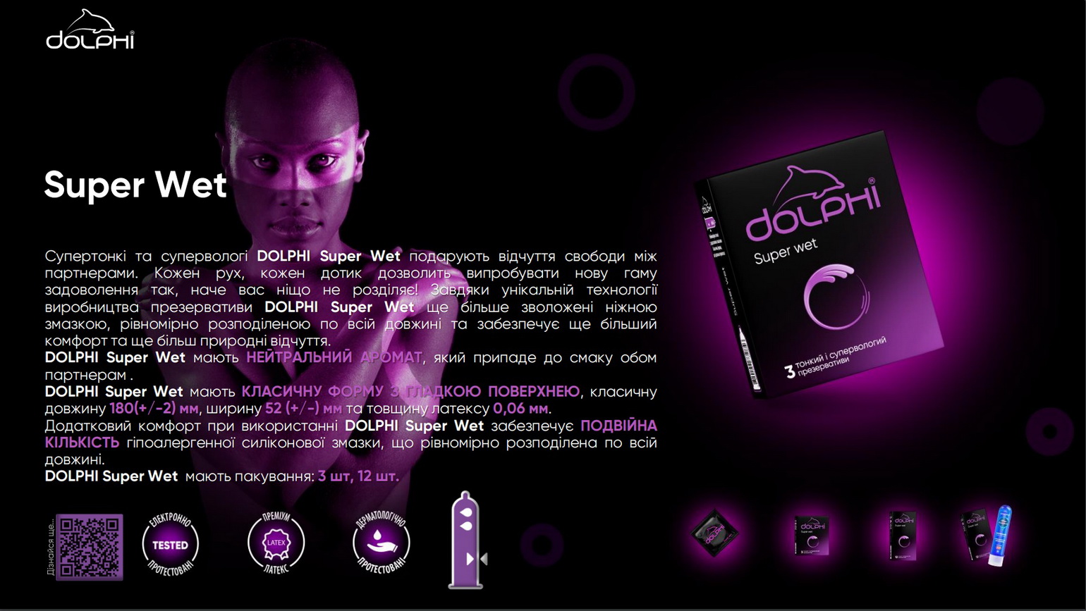 Dolphi Super Wet — це більше ніж просто презерватив. Це комфорт, пристрасть, волога, гладкість і той самий “вау-ефект” уже з перших секунд. Спробуй один раз — і повертатись до звичайного вже не захочеш.