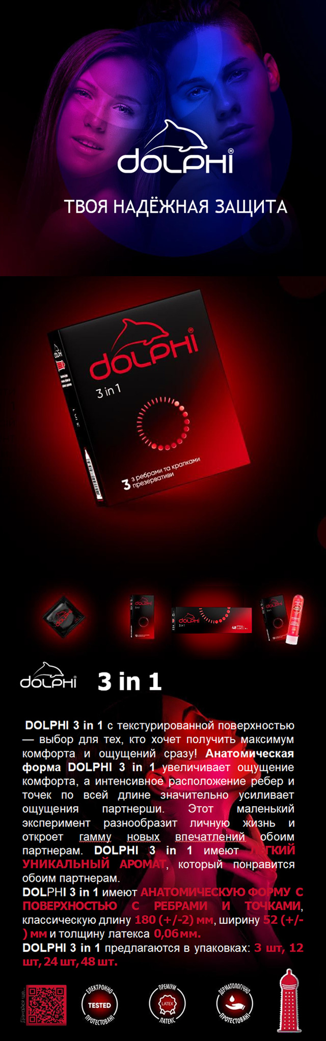 Презервативи Dolphі 3в1 крапкові-ребристі 36шт (3 пачки по 12шт.)- це принципово новий вид запобіжних засобів для тих, хто любить жагучий, тривалий і невтримний секс