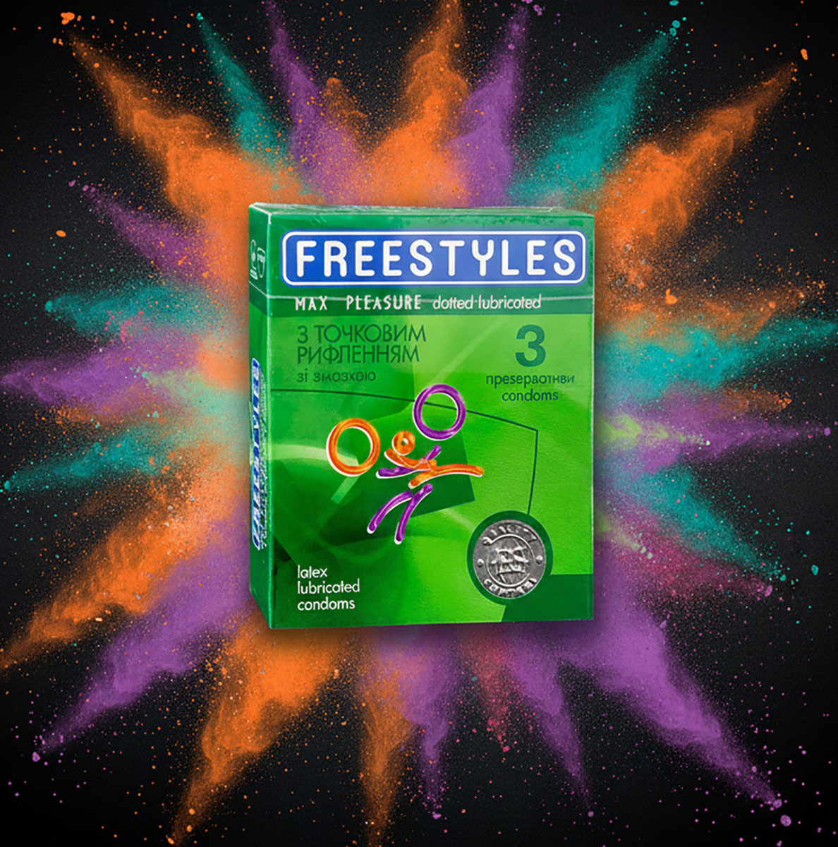 Упаковка компактна, яскрава, але доставку ми робимо повністю анонімно — без назв, без натяків, без цікавих очей. Твоя пристрасть залишається лише твоєю. А Freestyles подбають, щоб кожен раз був не схожим на попередній — безпечним, гарячим і по-справжньому живим.