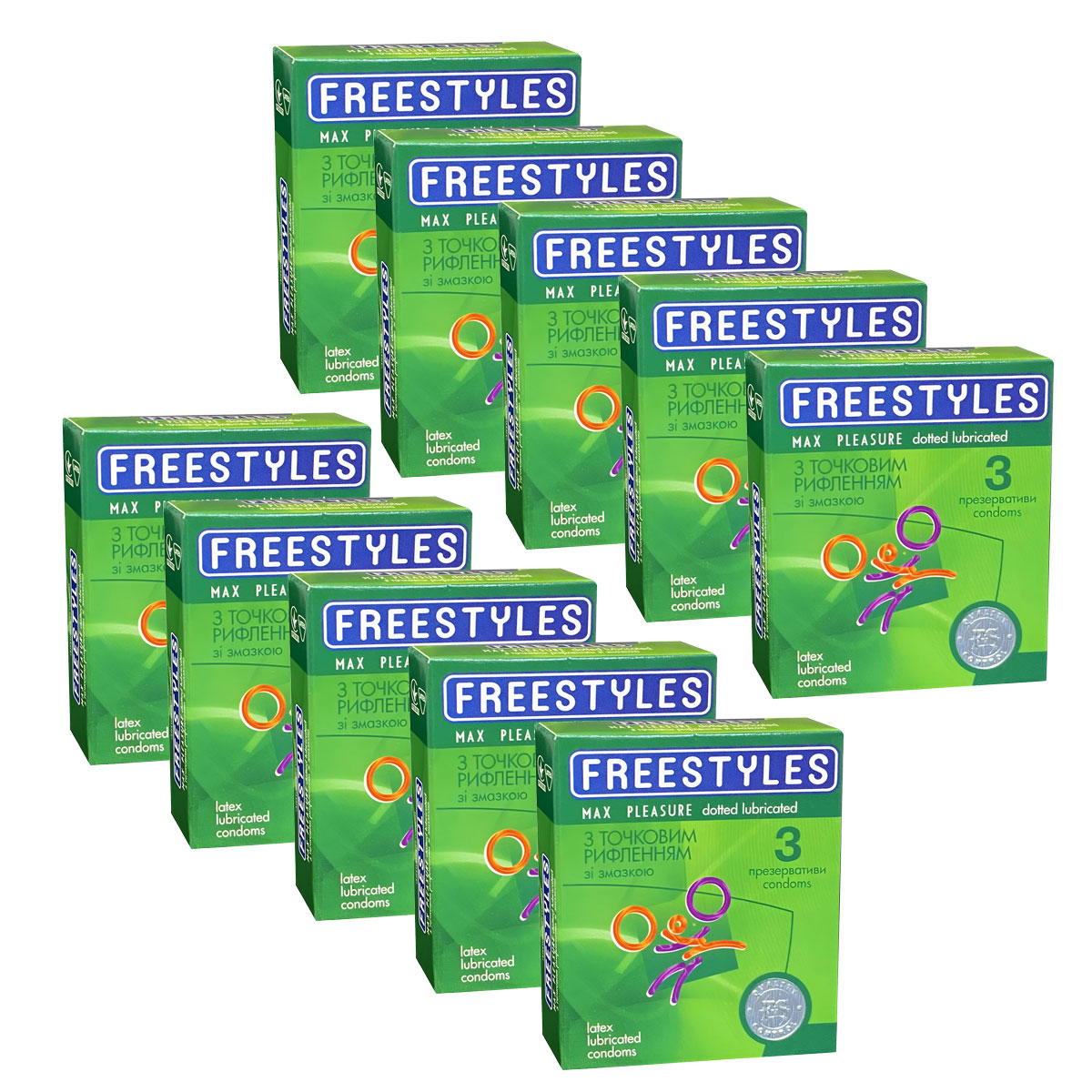 Блок презервативів FREESTYLES 30шт Max Pleasure точкові (10 пачок по 3шт)