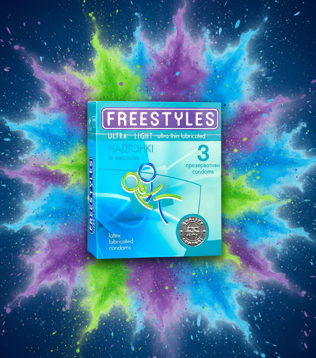 Жодних перешкод. Жодного зайвого. Тільки ти, вона і тіло, що говорить без слів. FREESTYLES Ultra Light — це 30 ультратонких презервативів у 10 компактних упаковках, які легко взяти з собою, щоб близькість завжди була поруч. Вони майже не відчуваються на шкірі — ніби між вами нічого немає. Тільки дотик. Тільки тепло. Тільки бажання.