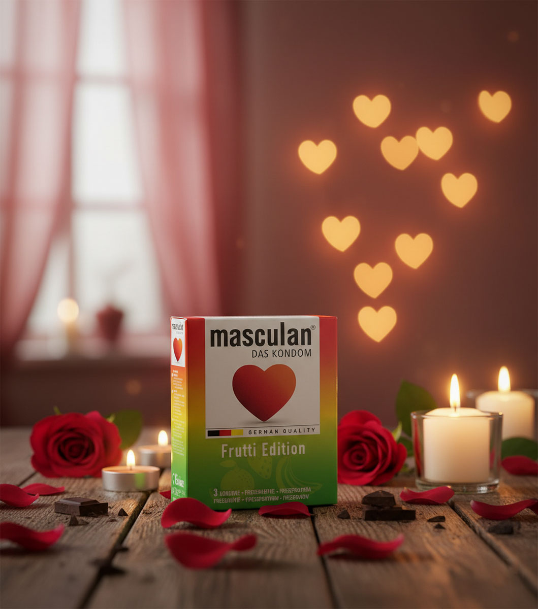 Скучні ночі? Ні, не чули. З Masculan Frutti Edition у форматі 3 презервативи ти отримаєш яскравий вибух ароматів і настрою. Полуниця, зелене яблуко, фруктовий мікс — вибирай на смак або довірся імпровізації. Цей набір — як солодкий поцілунок перед пристрасним танцем.