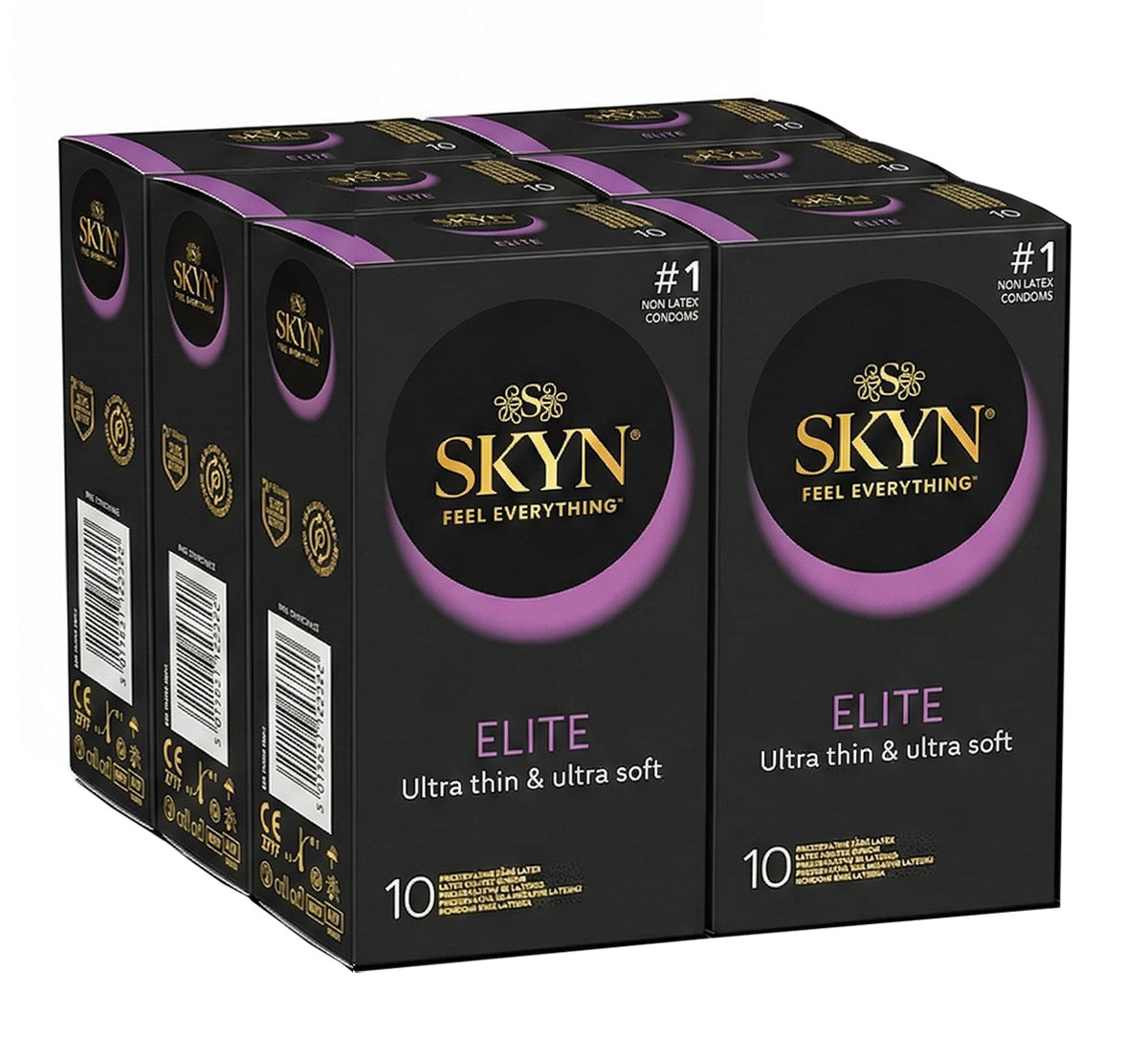 SKYN Elite — комплект із 60 супер‑тонких безлатексних презервативів (6 упаковок по 10 шт.)